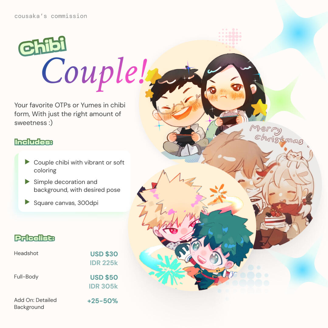 • I accept payment via PayPal (International) and BCA (Indonesia)• For details regarding my PayPal/BCA account, contact me through my DMs/E-mail